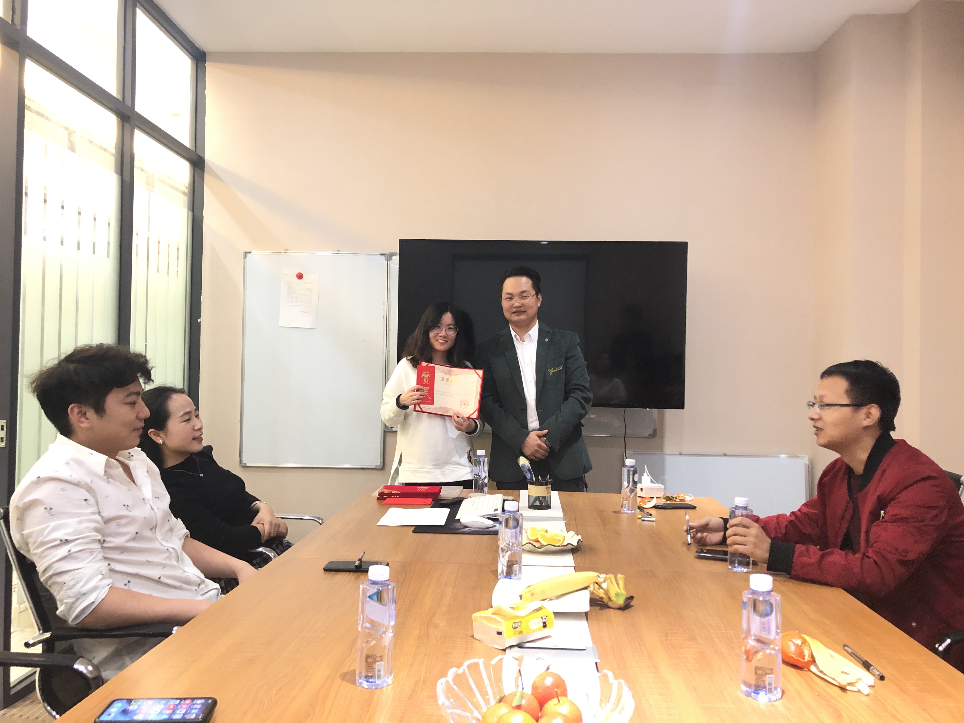 演講結束,老板為“口才達人”一、二、三等獎人員頒發證書。